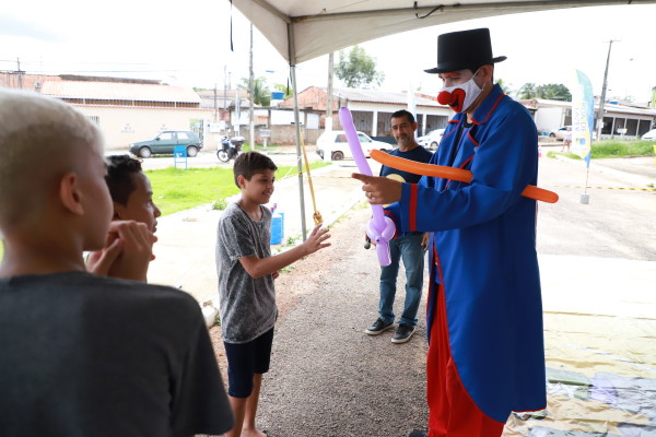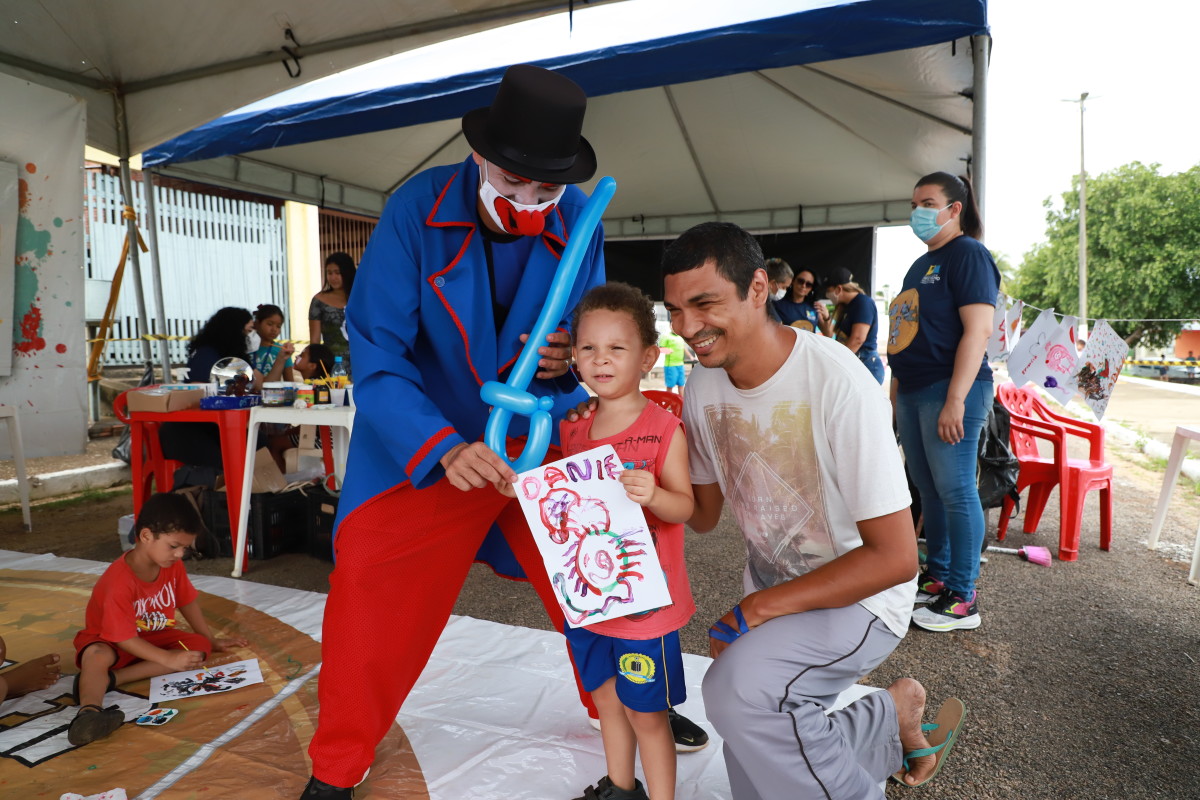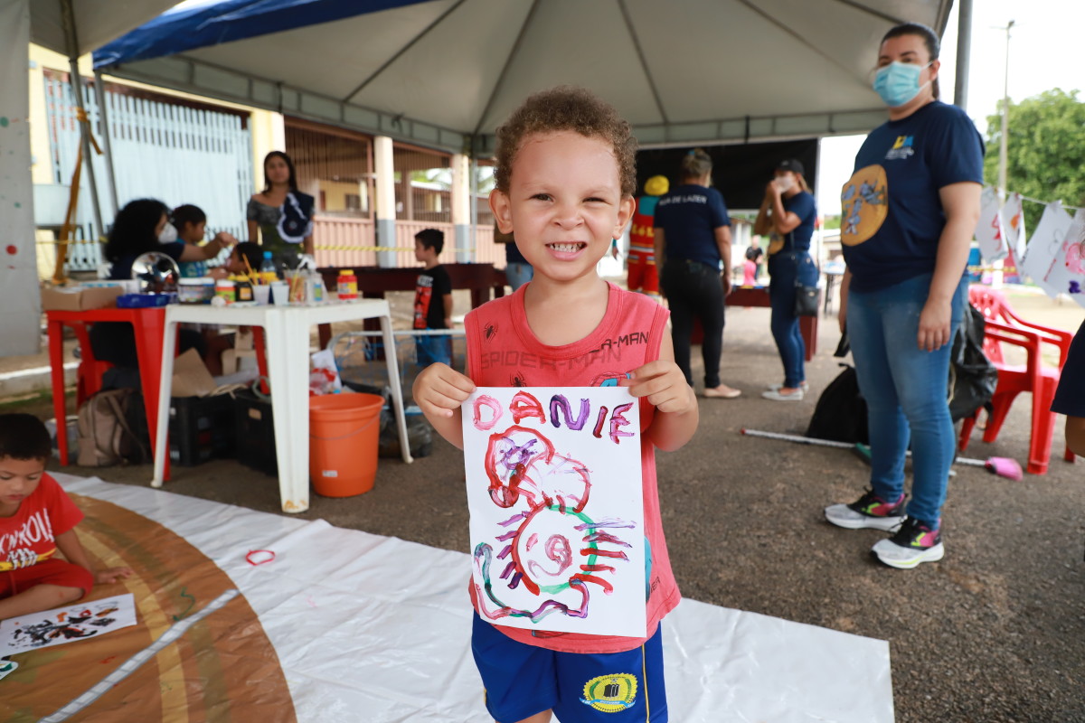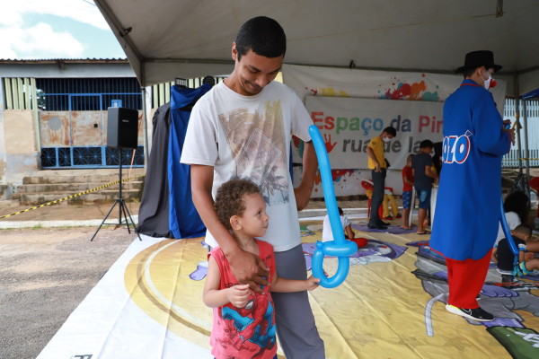 “É legal esse tipo de ação e muito boa por ajudar no desenvolvimento da criança. Ela ainda proporciona a interação que, apesar de me cansar, foi bacana participar junto com meu filho Daniel Avelar, de quatro anos, mostrando como brincar em cada atividade. Ele gostou muito de pintura e da corrida do saco”, contou feliz o pai Noé Ridson, morador do bairro Nova Esperança, que estava pelo bairro onde moram a mãe e a sogra, e aproveitou a realização do projeto.